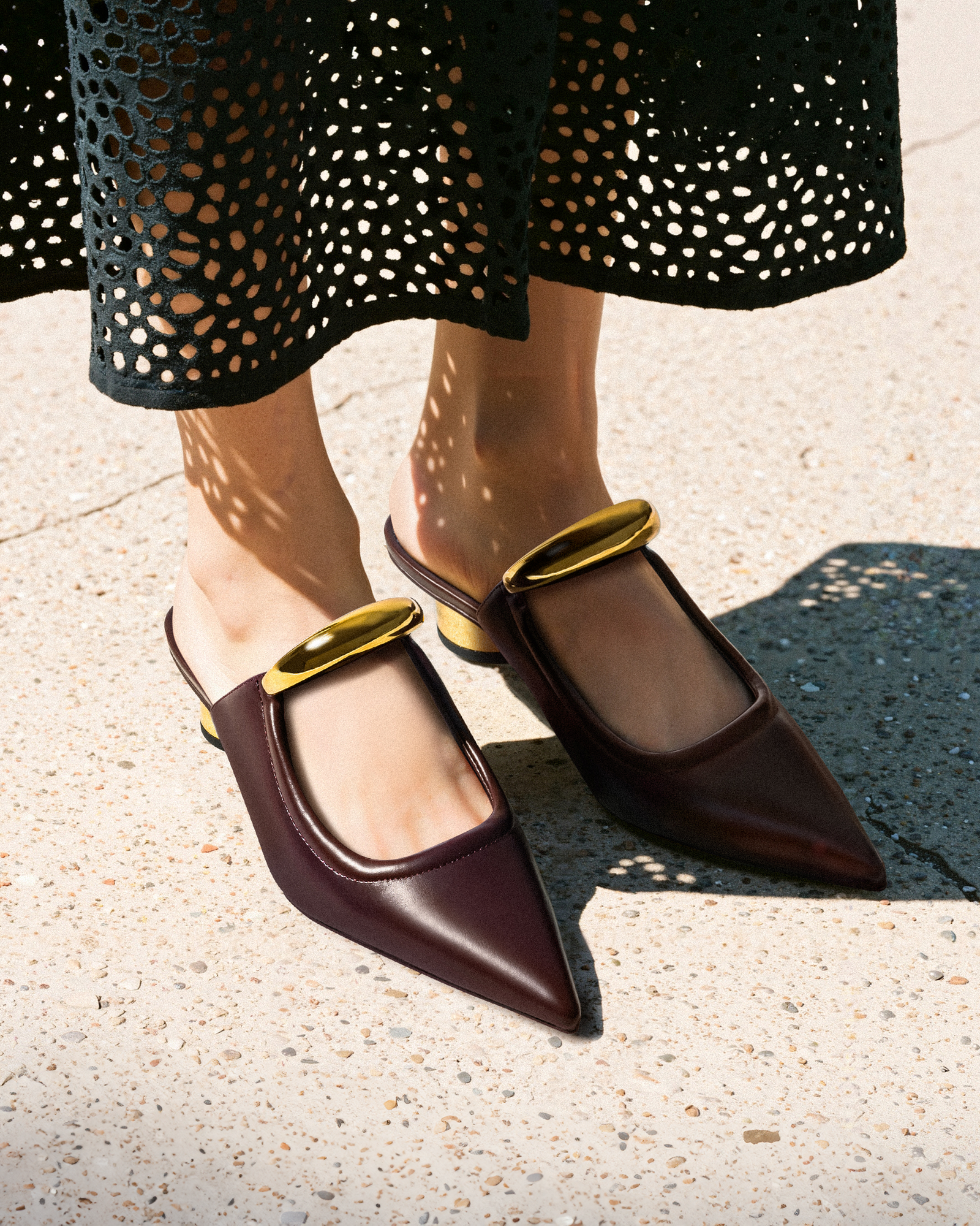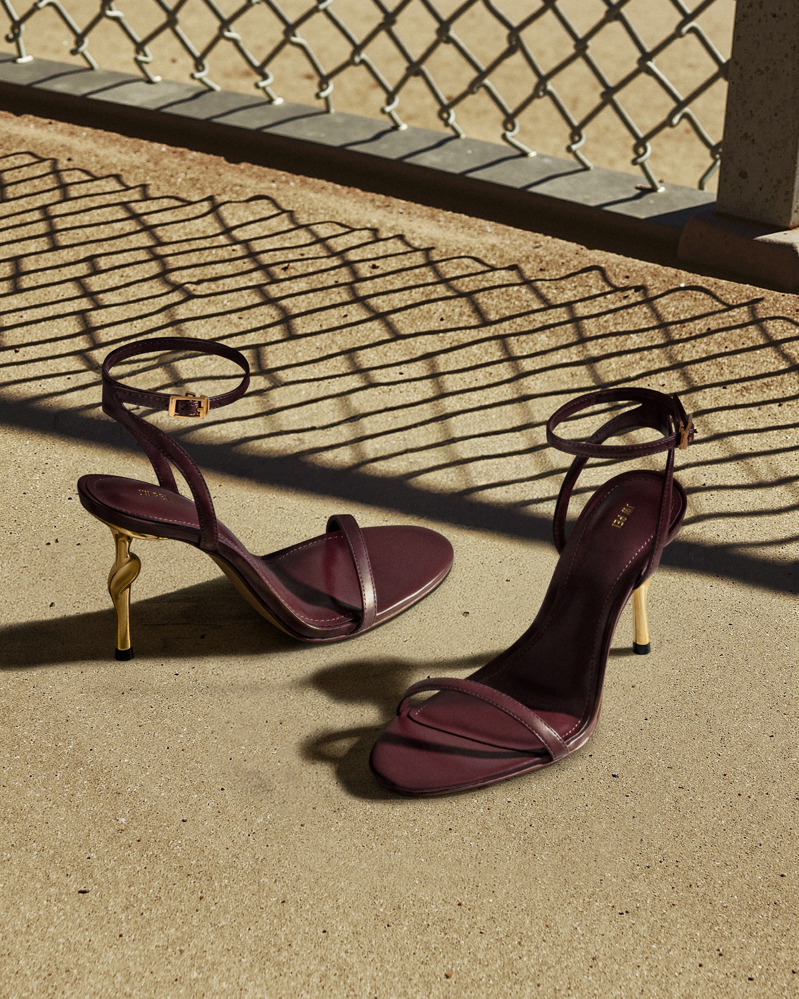 Alivia Gold Metal Heel Sandals - Claret Red